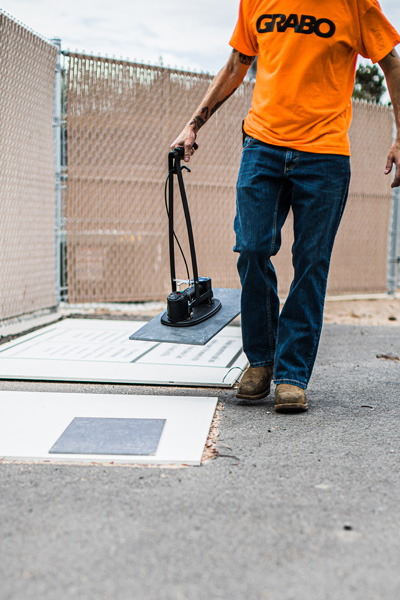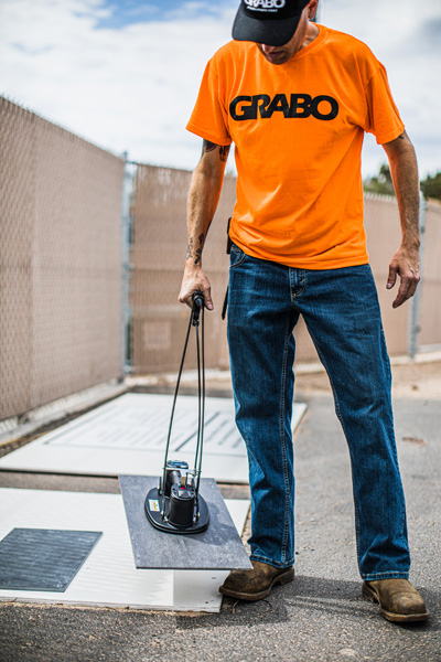 GRABO Classic is equipped with a strong vacuum pump, that works in tandem with a robust foam seal. To lift any flat slab of solid material, simply turn on the unit and place it straight on the surface.