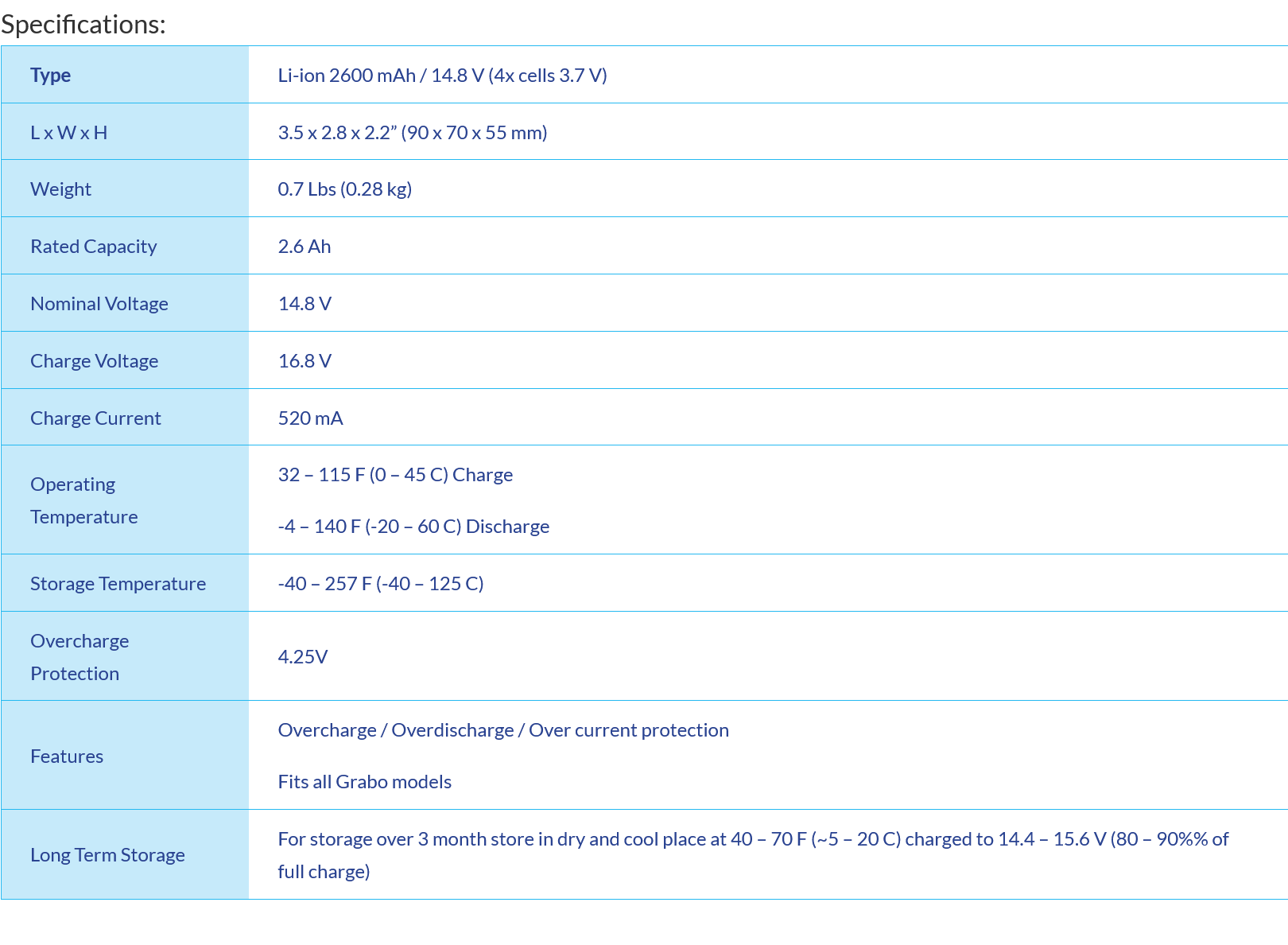 These batteries are as powerful as the ones supplied with the tool. A full battery charge delivers up to 900 operating cycles or 1.5 hours of uninterrupted run time. The high-capacity battery can be used with all models except GRABO H.